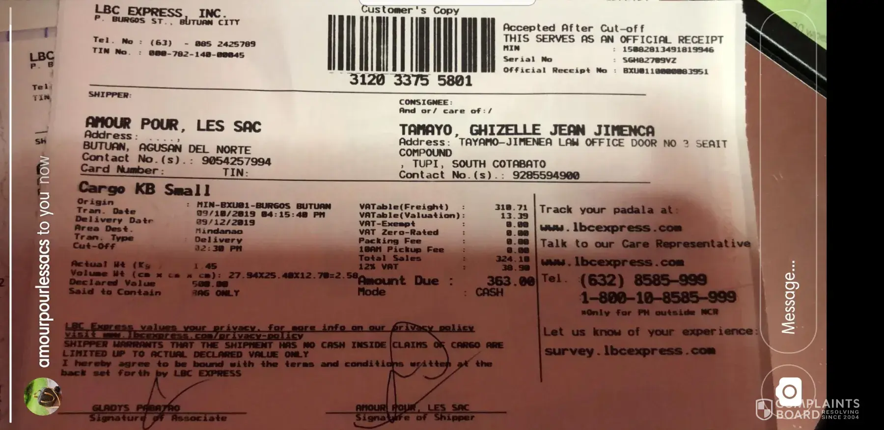 I am complaining about bayambang lbc branch mr jejie agbuya