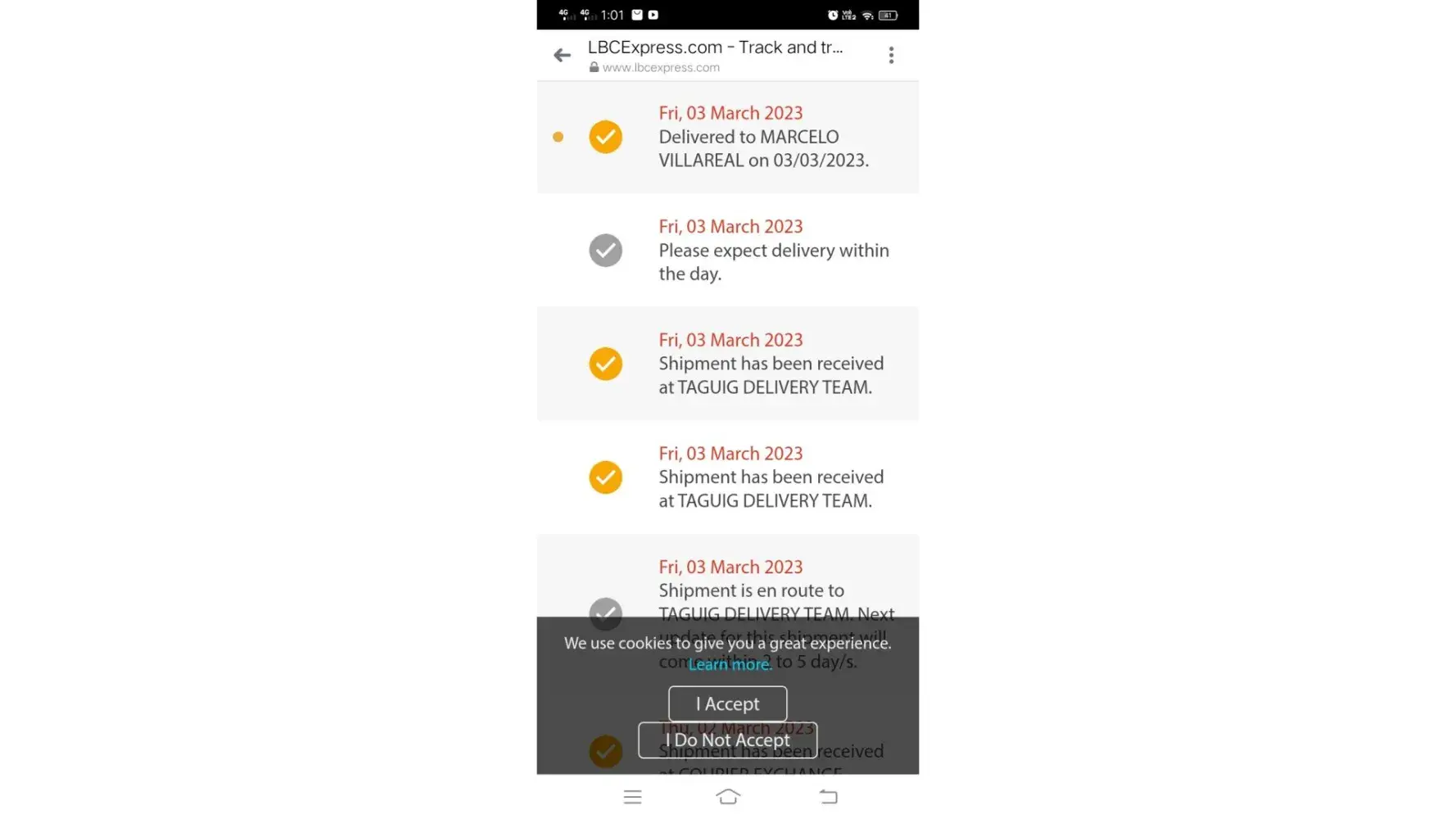 Unlike sa ibang delivery company or services time to time pwedi mong e check Yung parcel mo at nag text when and where dadating Yung delivery mo. At Yung iba tumatawag pa for confirmation.