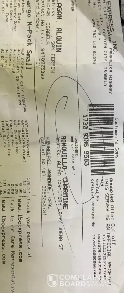 I just want to write a complaint about the worst service of LBC Bago City Negros Occ.branch.