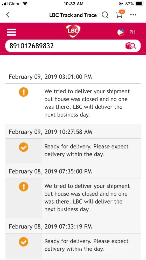 I have an expected package since last feb. 8 and it did not arrive. Upon checking the status was it failed delivery because "the house was closed" as per your system despite of us being there 24/7. Another failed delivery attempt was recorded last feb. 9 even tho, again, we're there. Status said that the house was closed again! No one even texted or called me during these delivery dates so what's the point of having my number on my package?