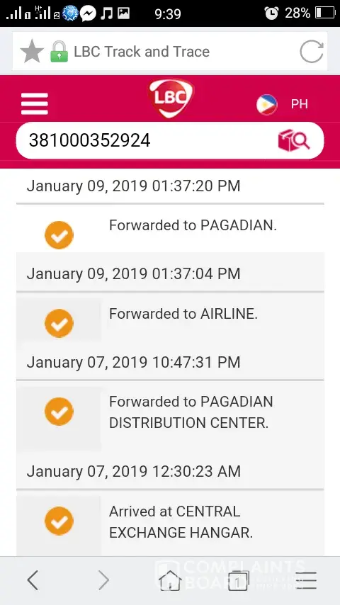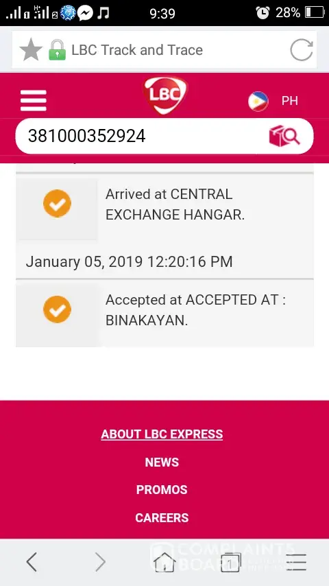 LBC EXPRESS!im so disappointed with your service because until now my parcel is not yet delivered, January 5, 2019 when my parcel is being ship but until now I didn't recieved it, even in your online tracking the updates is still the same..Whats wrong with your service!Please give me an exact details and updates regarding to my parcel as soon as possible or else I will report you to the Authority!