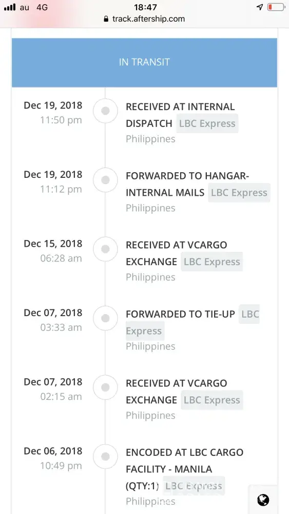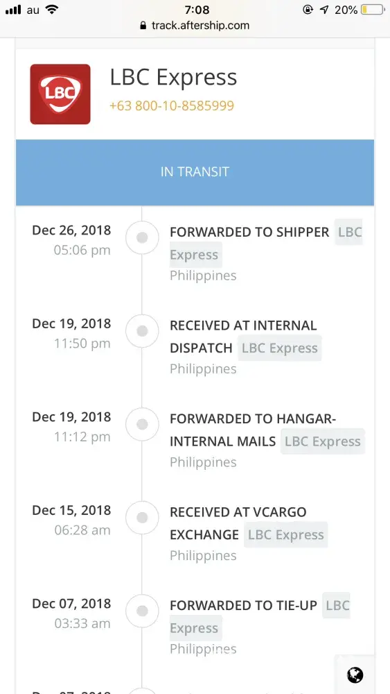 20 days have past and based on the tracking aftership info my package it is still in the Philippines?