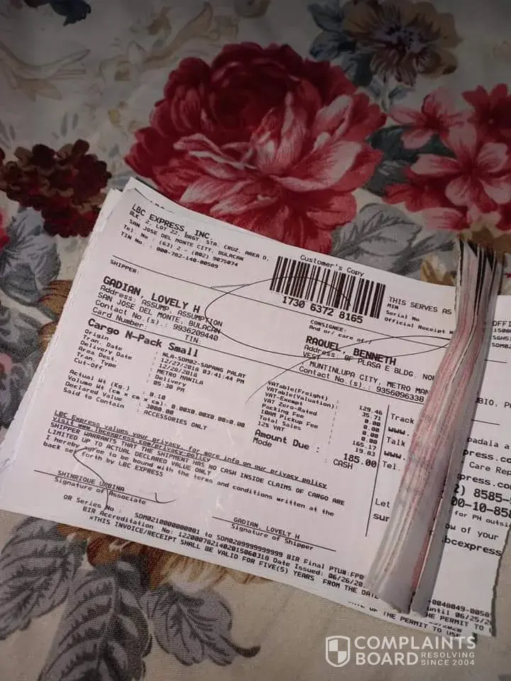 Nag order ako sa shopee, apat na parcel, naka lagay sa shopee dec 12 darating or ma rerecieve ko pero hanggang ngayun wala paring lbc na nag txt sa akin na dumating na parcel ko, pinuntahan ko sa lbc don carlos bukidnon branch baka sakali kasi minsan natatabunan ang ibang parcel kaya hindi naededeliver, pag punta ko doon pinakita ko ang xpost tracking number at order id, ang sabi ng teller hindi yun ang kailangan nila kasi gusto nila lbc tracking number talaga, mag papasko at bagong taon na wala pa ang parcel ko, bukod jan bayad na yun at remittance din ng lbc ako nag bayad, receiver name ng parcel alben robles contact no.[protected]..Na track ko sa shopee ang sabi dec 7, dec 9 papunta na ng lbc malayabalay bukidnon ang parcel ko pero hanggang ngayun wala pa, mas nauna pa nga dumating yung overseas na parcel ko, nakaka inis..