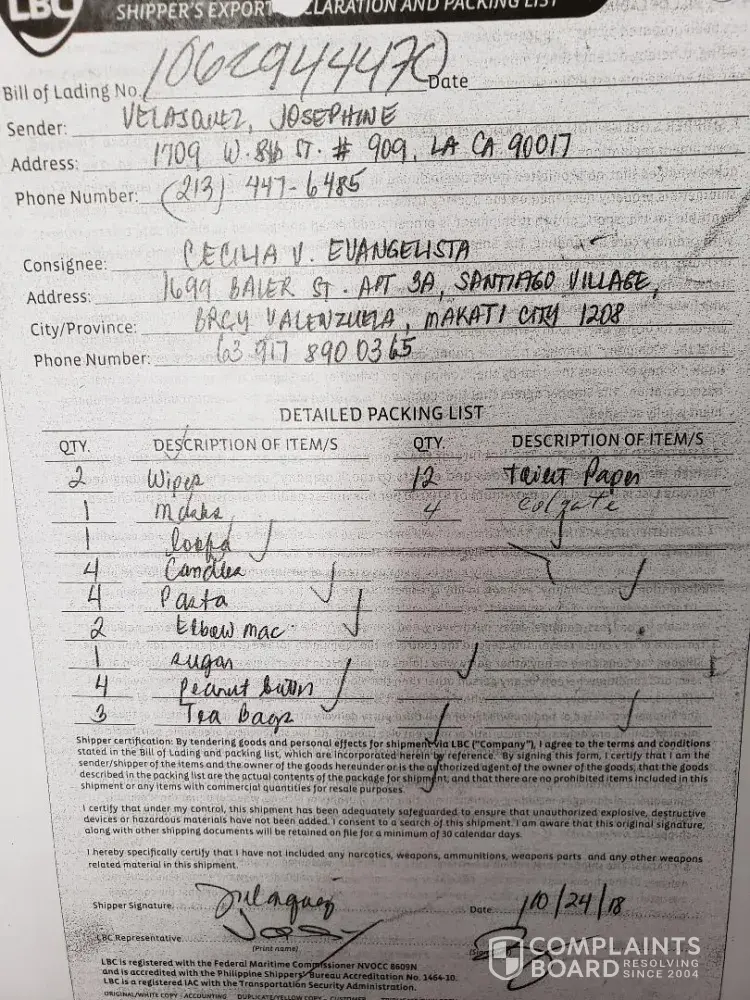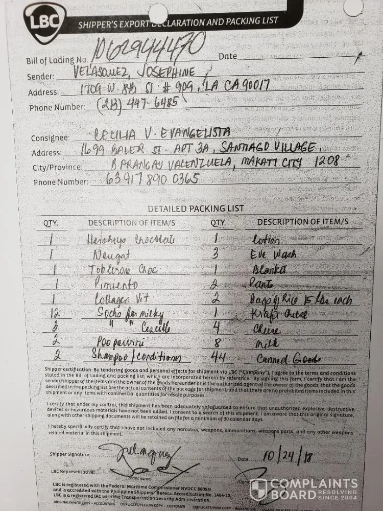 I would like to file a complaint to LBC for not doing anything to this matter! Now you are telling me to pay again the shipping fee and go to LBC Harbor Point for the package to be sent again!