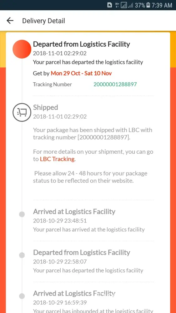 Yesterday, when I checked my phone around 3pm. That was from the lbc deliverer. He said that he would deliver my good that day. But before that, I havent received any notice from them that they would deliver my purchases in that certain day because I was expecting that I would be delivered to me on Nov. 4, 2018. So I call him that maybe they can call or text me or my mother when they would deliver it to me today because he told that today would tge last day that they would delivwr it to me or else they would forward my items back to the sender. Today, early in the morning I can them and yes tgey said to me that they would deliver it to me around 11am. But now its already 2:36 pm and i called him and now he cannot be reached in the phone. I texted them many times and they are not respond. I spent the whole day waiting for my order. But they were cooperating when even just a call or a text from them. They should have gove notice the day before they should deliver the items. Thanks. Hoping there would an action taken for this to not happen again in the future. Because this happen to me already twice.