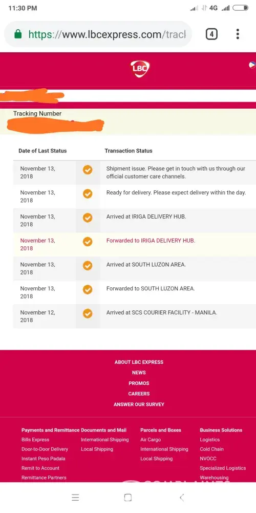 I sent a package last Oct. 28, 2018to LBC branch here in Sta. Rosa to Pangasinan.