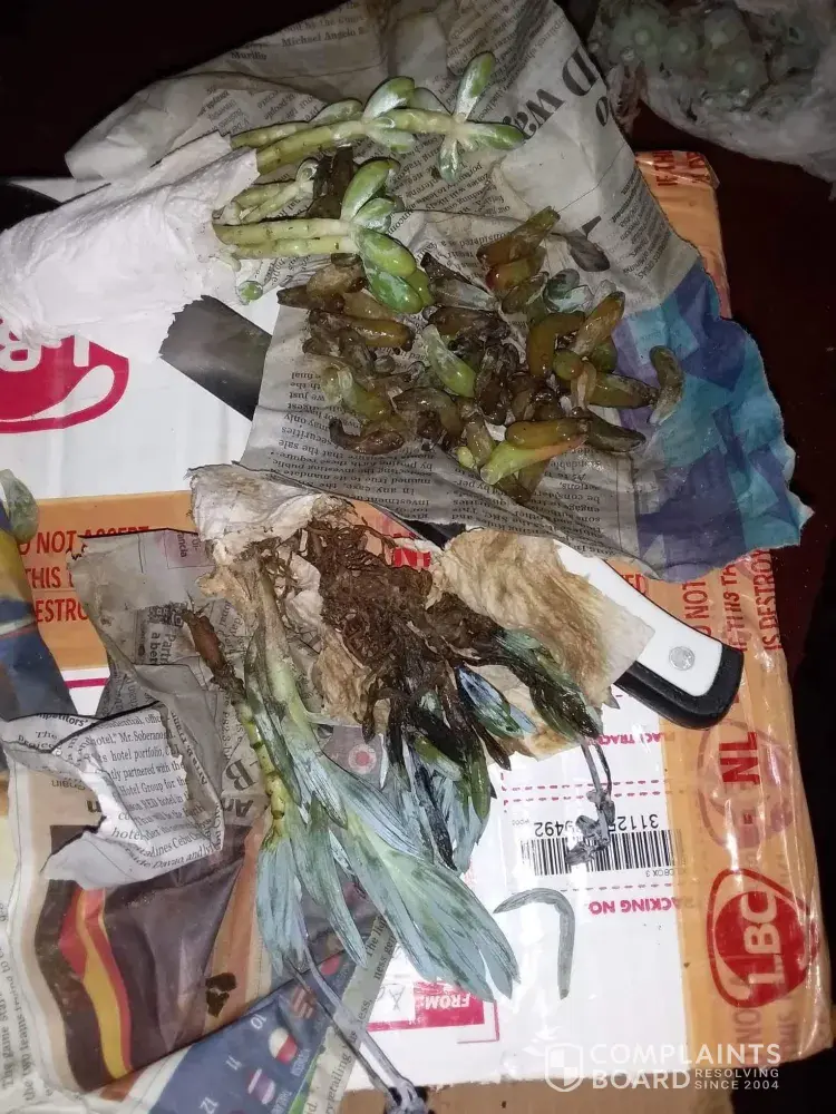 The plants wilted, leaves turn brown..The plants are totally damaged, these are succulents..I am reporting this incident to demand for refund to all the damage plants