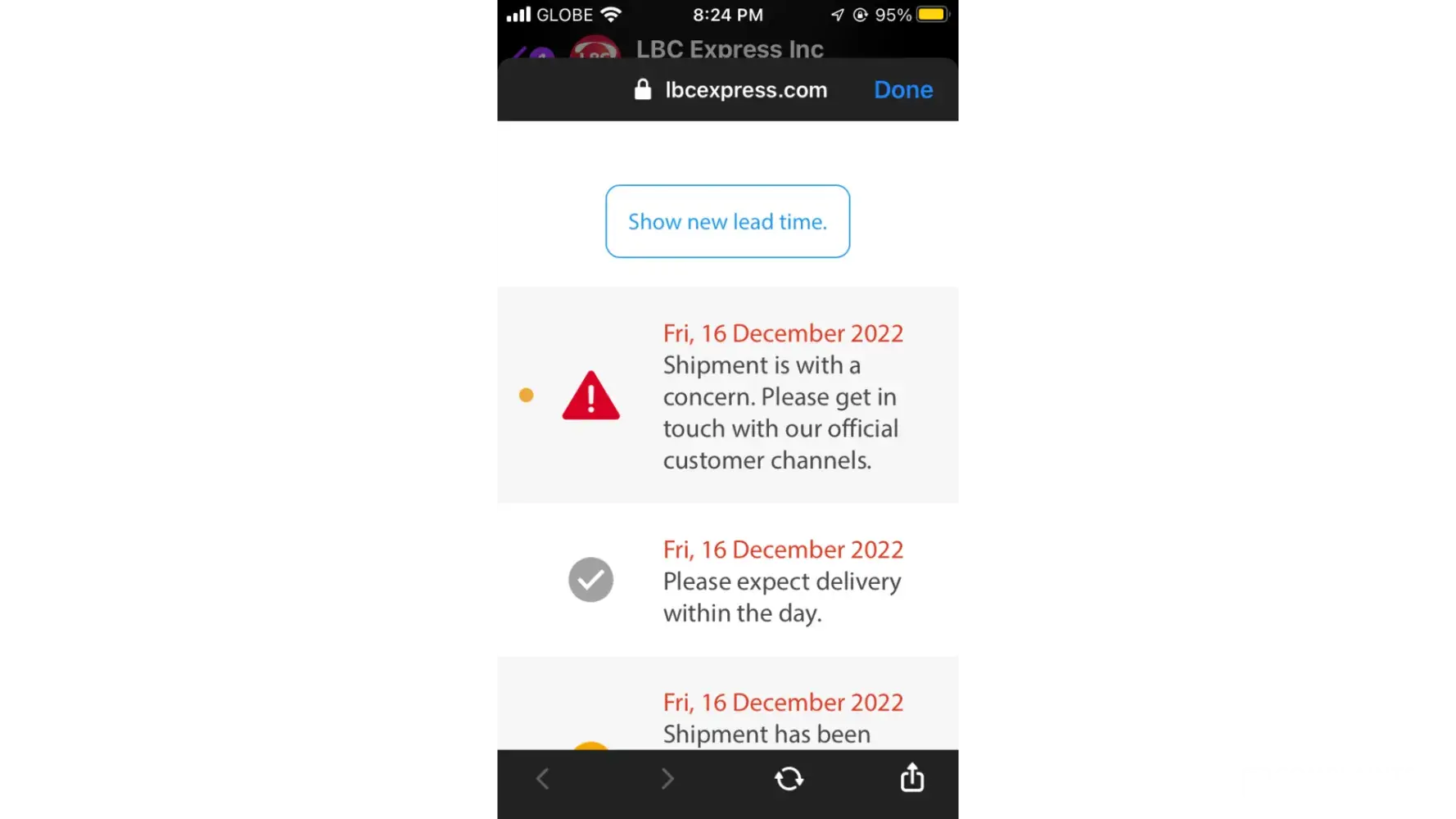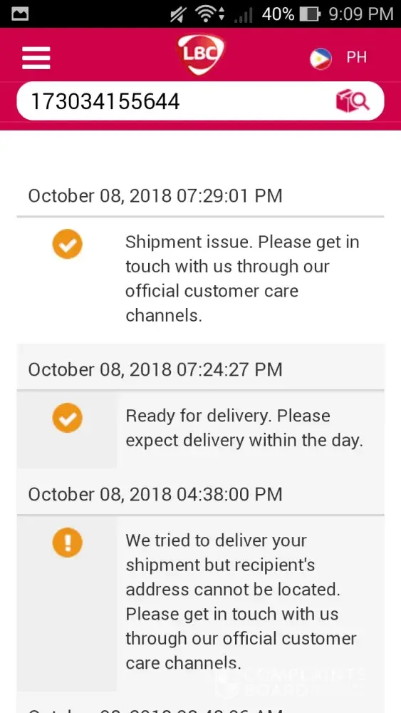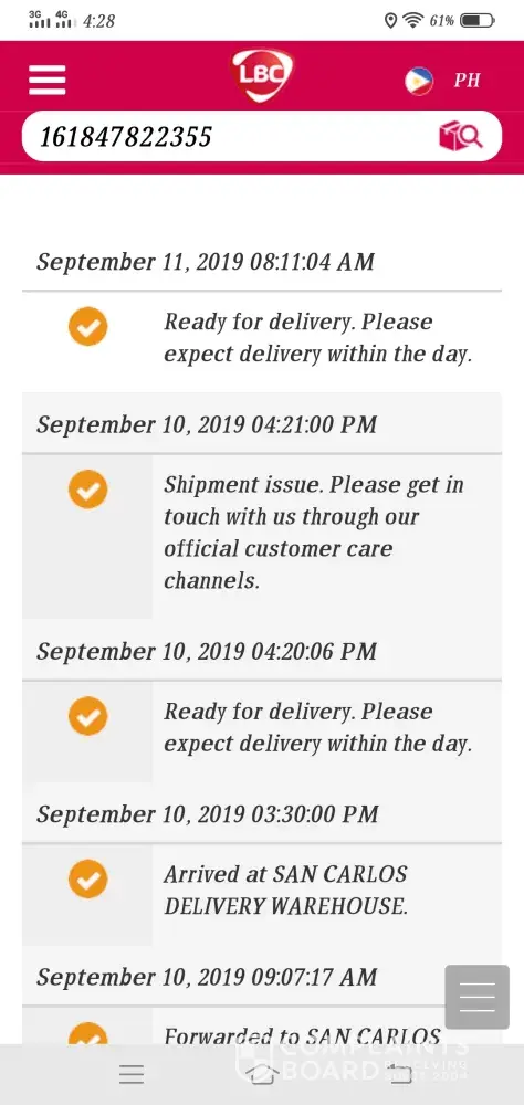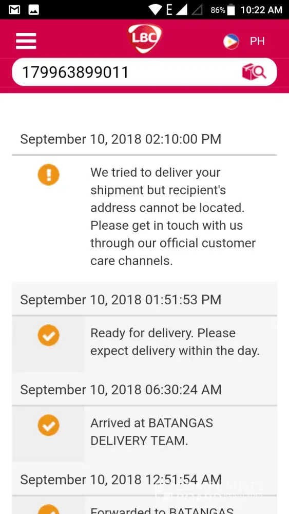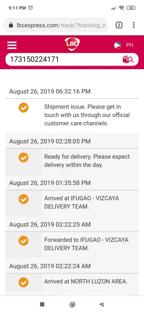 Hi Ka LBC- good day! Your concern has come to our attention & we would like to assist you. Please get in touch with us, through any of our Customer Care channels ; 24/7. Our Facebook Page www.facebook.com/lbcexpress and hotline (8585999 for Metro Manila and [protected] for Provincial areas). Maraming salamat -Tet, LBC Customer Care Associate.