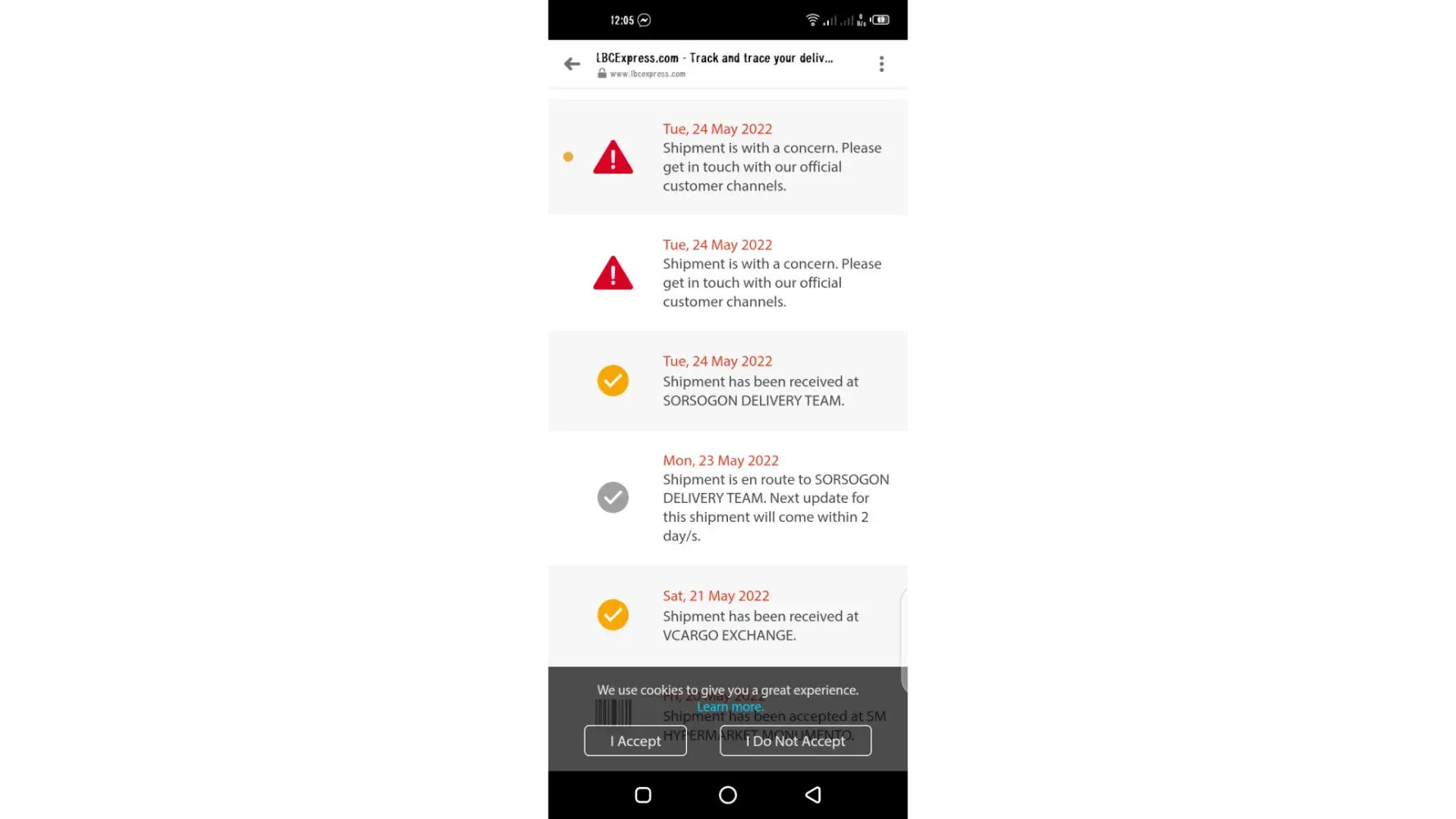 Until now i hven’t received my parcel, shipment is with a concern po nakalagay. What is the contact number for lbc? I emailed them already but no response. April 24 ko pa dapat nareceive but no attempt on delivering my package.