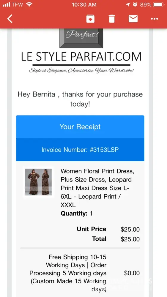 I purchased a chiffon top [invoice number k2128lspk] on 3rd january 2017 from an online store called le style parfait kenya and they advised that the delivery will take 4 weeks. Below is the acknowledgement of my payment