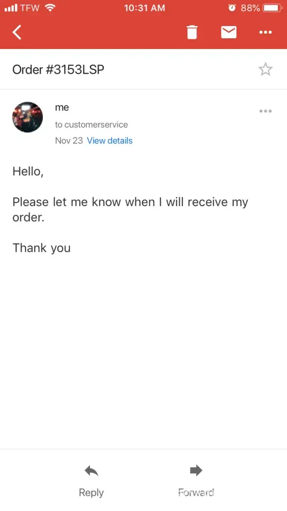3 days later, I got an email that the order has been fullfilled and it has been shipped and that an agent will contact me. Right now I have not got any contact from anyone. I try contacting them and what I get is arude response from their whatsapp. Here is my order number k2568lspk