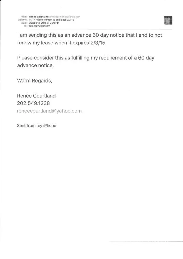 One final word. I also ask that you somehow contact me by email or phone call. And that if you decide to terminate my lease, I