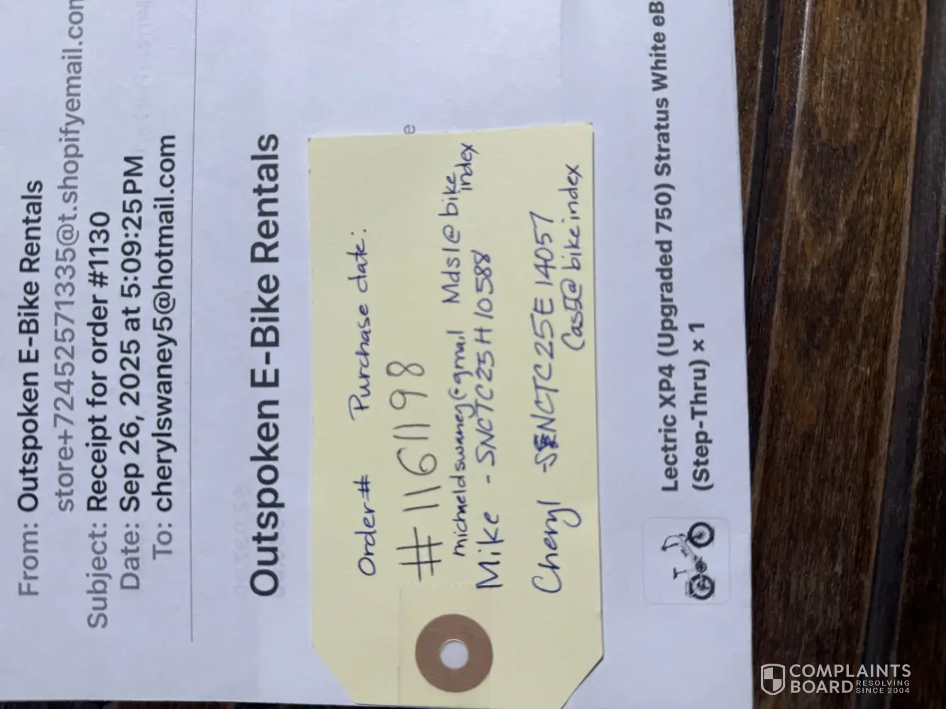 Desired outcome: 1 week old. Replace if possible under Warranty. Make it right. Have a planned bike vacation coming up soon. Scheduled to try our new bikes.