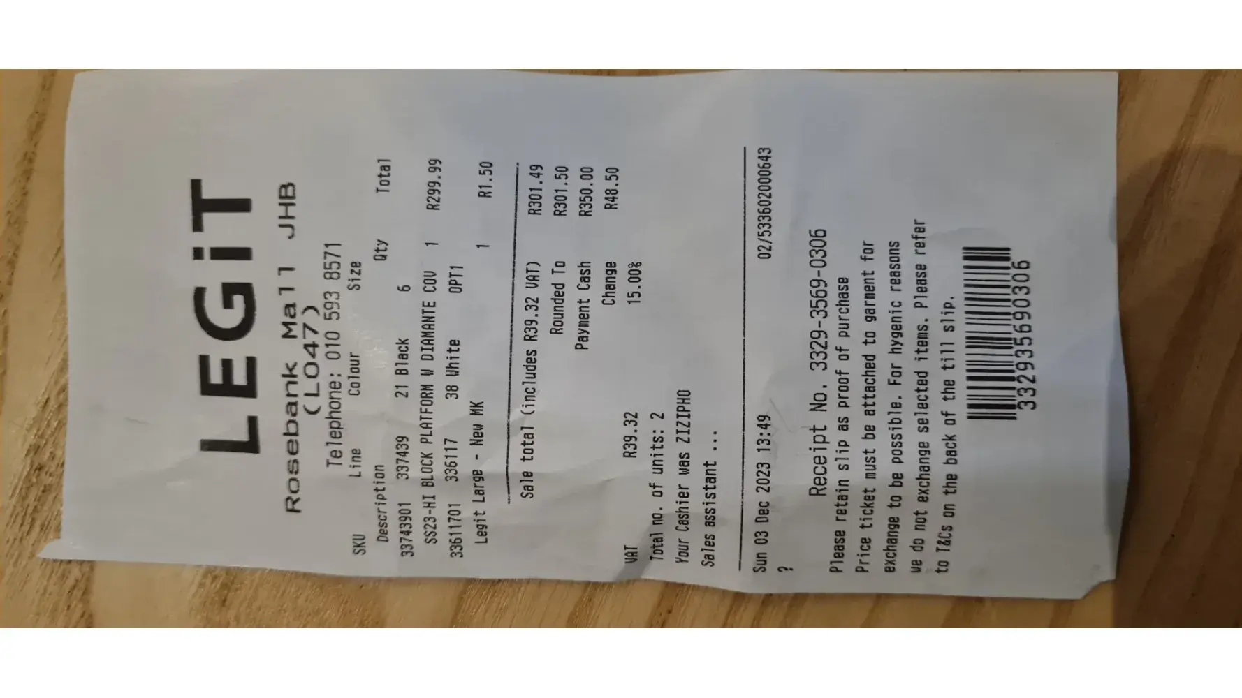 Legit.co.za Shoes bought on the 3rd December 2023 in Rosebank mall