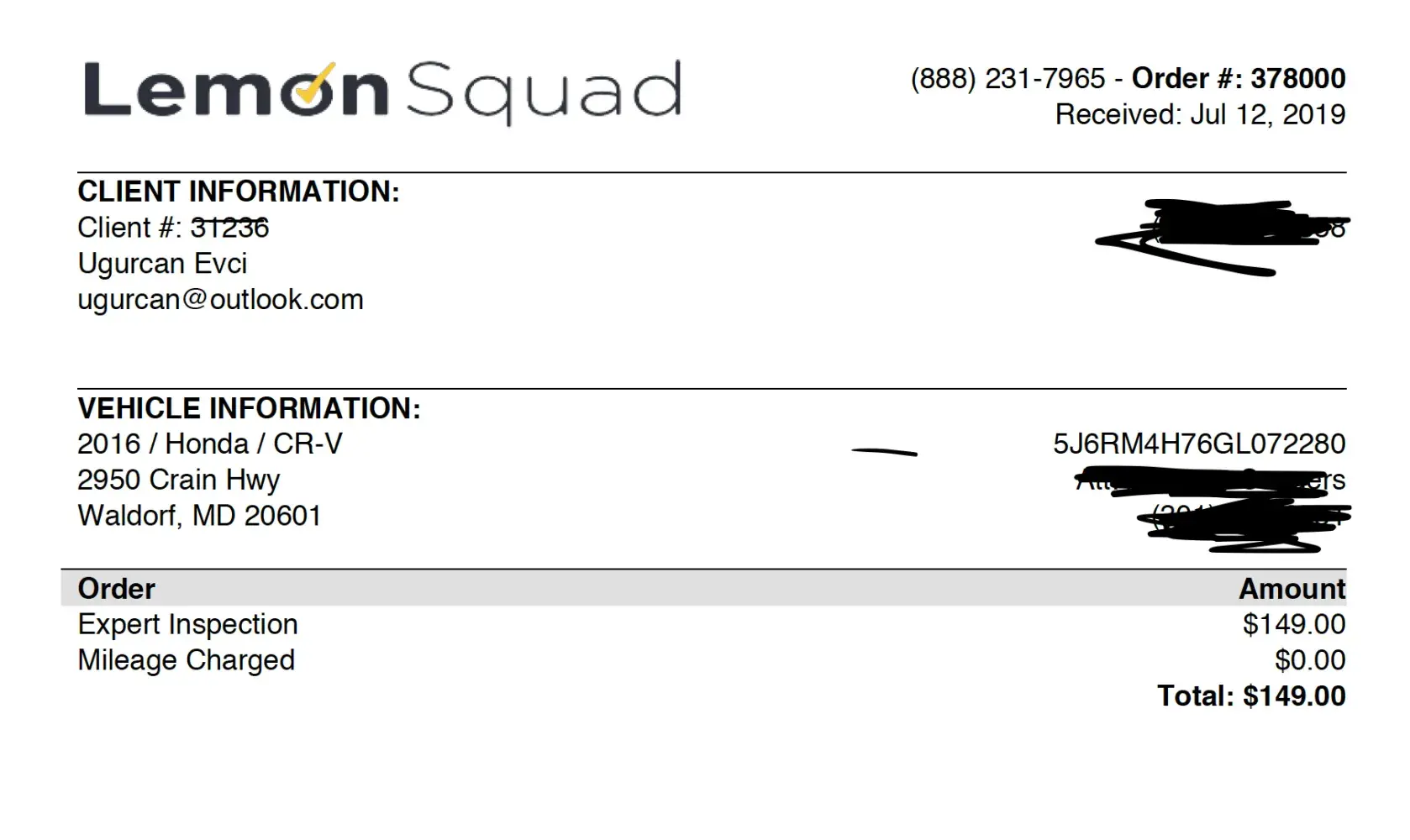 Against my judgement my wife hired Lemon Squad to inspect a 50k used SUV in the Atlanta area. The owner is based in MN, Lemon Squad 6043 Hudson Road, Suite 305 Woodbury, MN 55125 P: [protected] who I assume hires a local guy to come out and look this over.