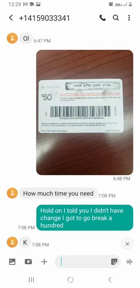 I was inquiring for a loan because my vehicle have broke down, the lending company a gentleman named Mike I've been working with him for about to 3 days. He's been asking for gift cards of different prices the 1st one was a Google play for a $100 the 2nd 1 was a gift card for eBay for a $100 today he swore up-and-down all day long if I've given him $50 more in a gift card of eBay he would release all my funds he said the loan was $2200 And he still wants more money but he can't even show me at least $500 or something it doesn't make sense And he still wants more money but he can't even show me at least $500 or something it doesn't make sense. How does a Google play card ensure my money it does not make sense he said that the first card what toys are my money $400 he said the second card was for I forgot what the third card which was the $50 was to pay for taxes for the money to be moved around from State to state or country to Country I don't know... I told him I wasn't sending him no more money I hadn't seen anything and he sent me some kind of fake contract as well so can somebody please communicate with me my number is [protected]... Thank you, Yvette Lopez