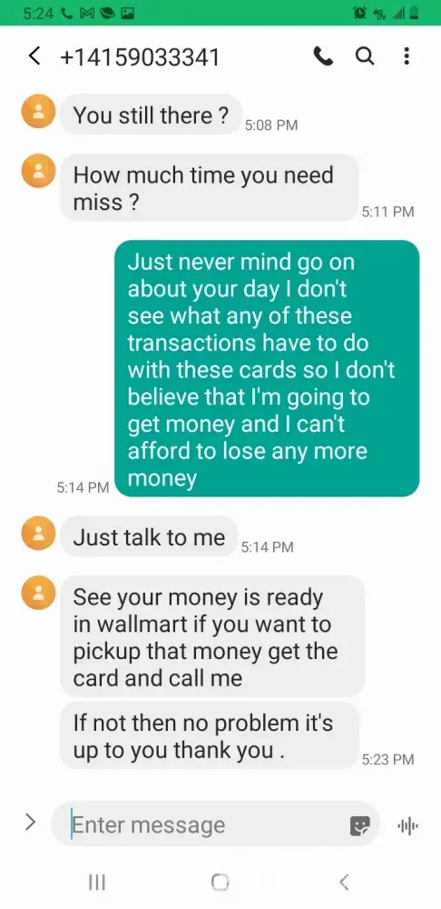 Christopher. Bradford was my loan advisor he said was approved for 8000.00 finally he said I needed to purchase a gift card 200.00 send him pictures of the receipt the package and the front and back of the gift which I did He then he would send to the processing department and call me back. When he called back he said he needed 300.00 for loan insurance I told him no way demanded my money back. He said fourteen days. I don't believe him. I think they are nothing but a bunch liars and thieves