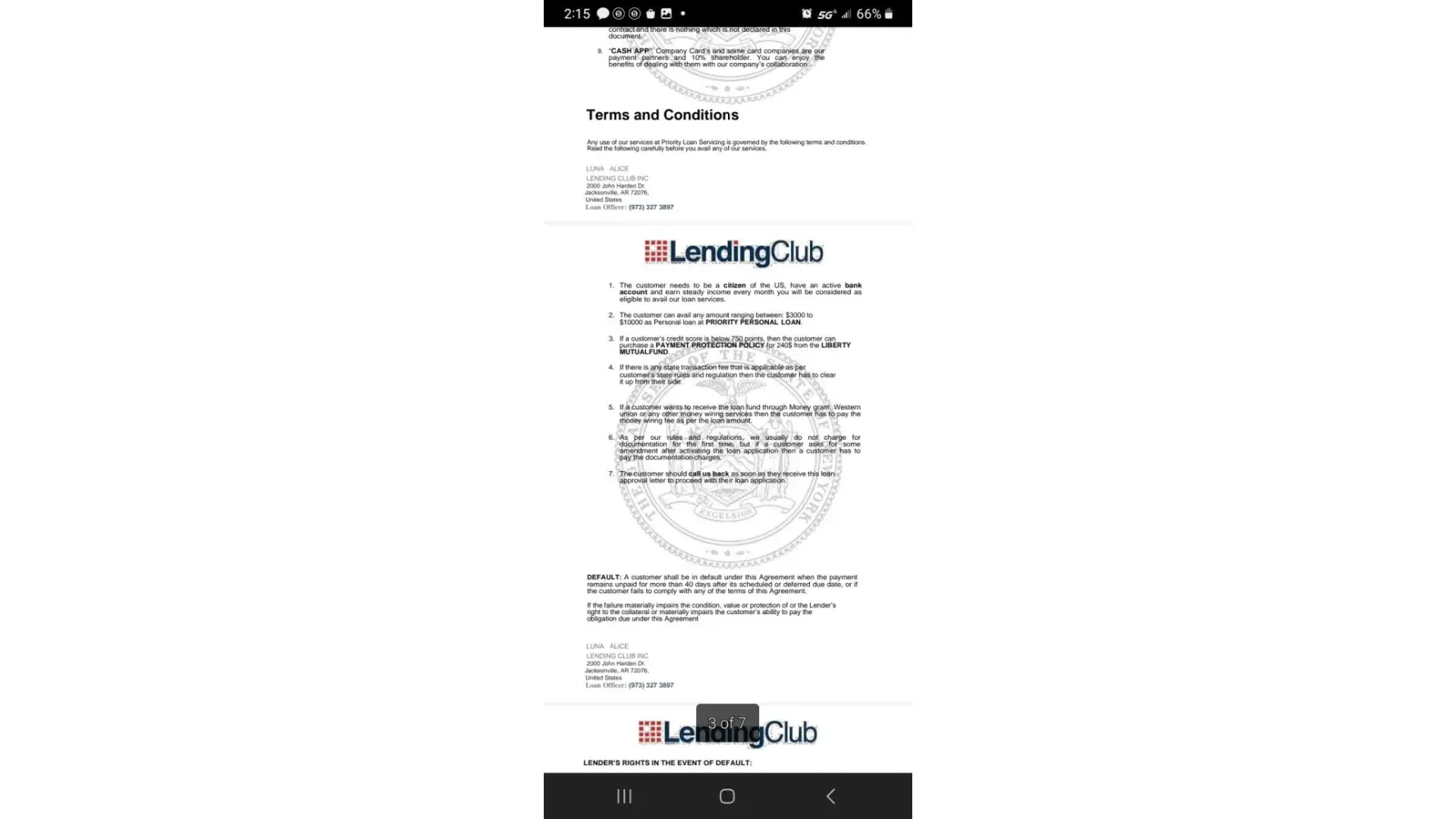 The scamming company sent an email and went by the name Lending Club