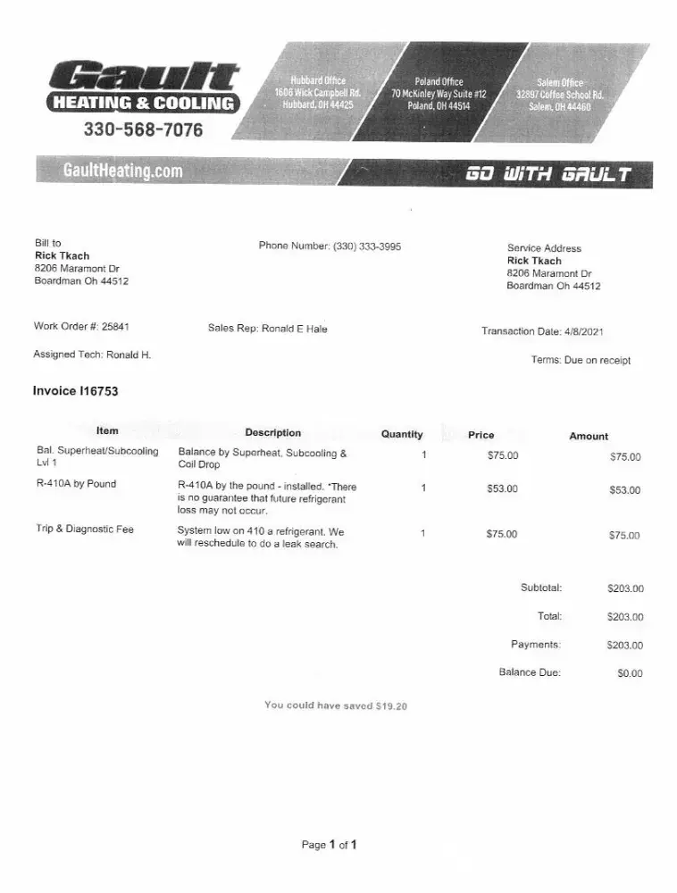 Finally, in early May 2022, we had another technician examine the unit. He attempted to fix the freon leak, but told us if this did not work, he recommended replacing the air system. In June, we had no choice but to replace the unit.