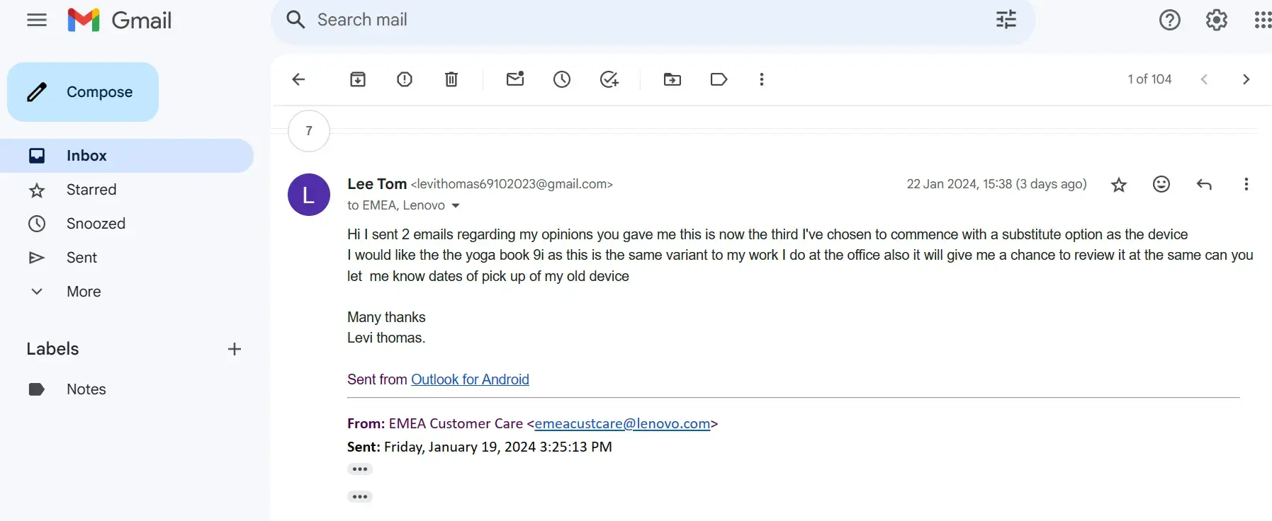 It took 5 months before they can authorise to pick up and refund the money. I emailed Lenovo about pick up date and location twice but the both emails got ignored. I took the matter further with Consumer protection and a lady called Stephanie contacted using the email address [protected]@lenovo.com. She was the rudest person I ever come cross. No apologies and denied everything I emailed. I was disgusted.