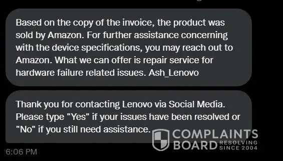 I appreciate the help of an outside company as also the Complaint section at Lenovo gives me a 404 error code. Hard to feel confident in their products when at every touch point encountered, i have had a terrible experience.