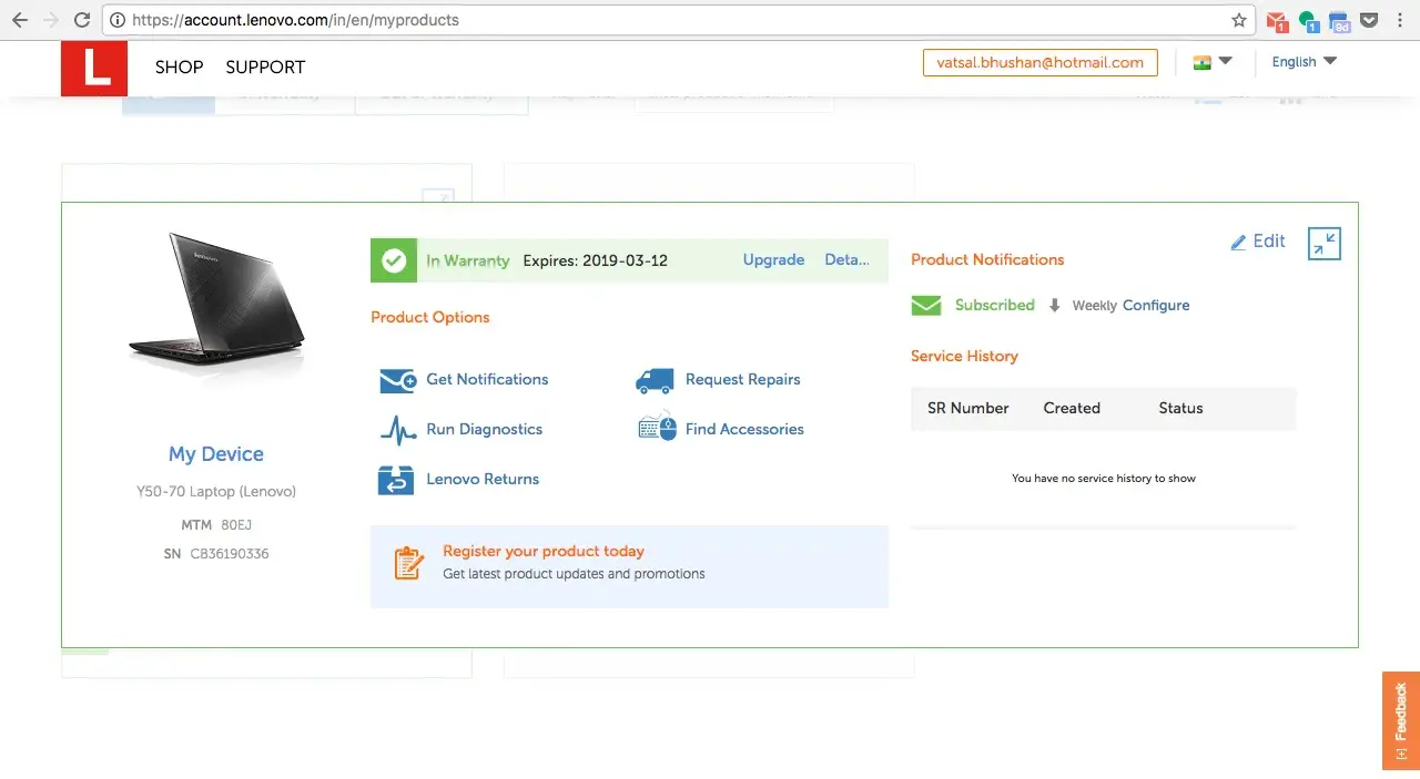 I had purchased a Lenovo laptop -Y50 - 70 (CB36190336) on 3rd Dec 2015 from Amazon which was covered under international warranty. The moment it got to me I witnessed an issue of the screen flickering which was a manufacturing defect. Since then I've had the laptop submitted in the lenovo authorised service center of Bangalore (LENOVO EXCLUSIVE SERVICE CENTRE - 1575, 11th Main Road, Aurobindo Marg, 4T block, Jayanagar) at least 8-9 times in the past year and I get the same issue again and again. I have the receipts and details of each instance. I have not been able to use the laptop to its potential ever since i bought it. Moreover I have to go through the tiring process of removing my personal data before giving it in each time. This is the pathetic experience of Lenovo's products and services.