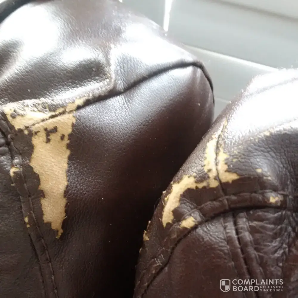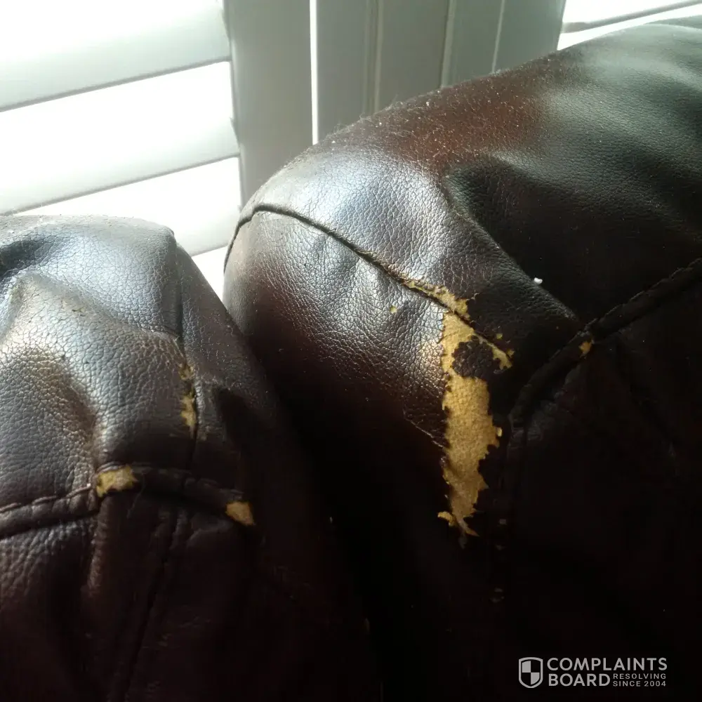 I have complained now a few times and have never gotten any result. We bought couch set in 2016 and we're lead to believe it was 100 percent leather. Well between the cushions and on the back between cushions it is all peeling so it is obviously faux leather in those areas. It is noticeable and getting worse as time goes on.[protected]@hotmailMcom