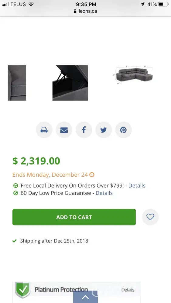 Hi, few days ago l have been in north York Leon's store location. l brought dining table set, sofa, rug and bed with frame. l measured sofa in my condo but sales person told me if l brought L in the shape it will be better. Anyway l thought his idea nice and sofa will look in my condo better. He was polite and feel me welcome to store. this reason l feel...