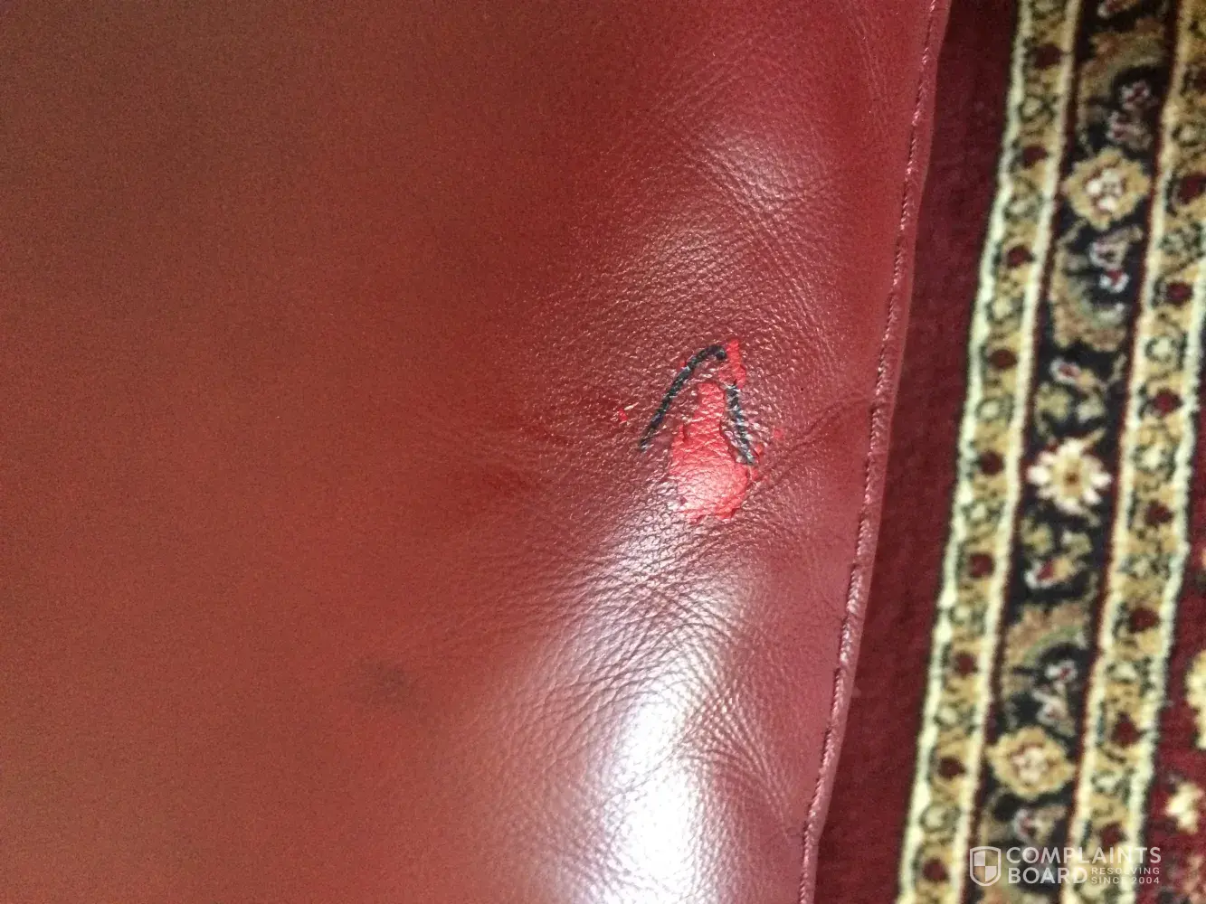 The furniture was delivered,  but one sofa was broken back of sofa, so delivery man took a away again and dropped the one chair up at my house, but I found litter chip of leather. I wanna change the chair to new one doesn't have any problems.