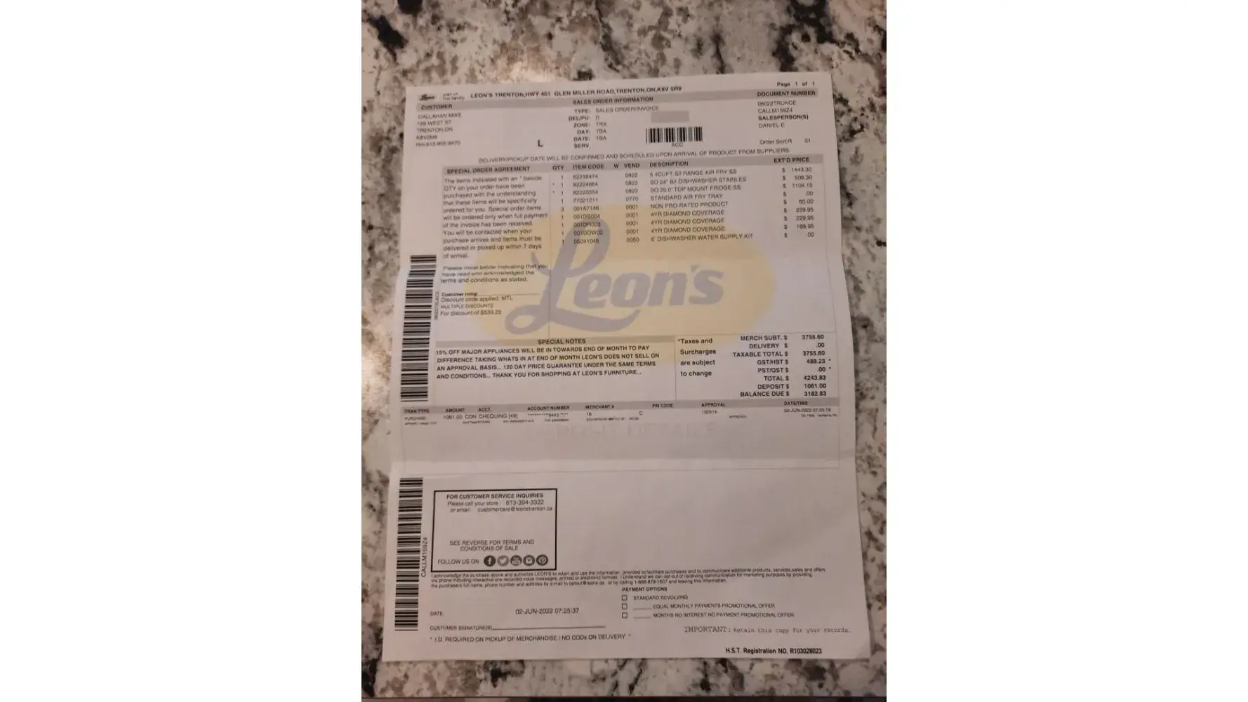 We have shopped at Leon's for years. We have spent a lot of money there. We purchased a refrigerator and stove, washer, dryer, tv, living room set. To say the least they have received a fair amount of money from us. We always purchase the warranty to make sure we are covered in case there is any issues with the products.