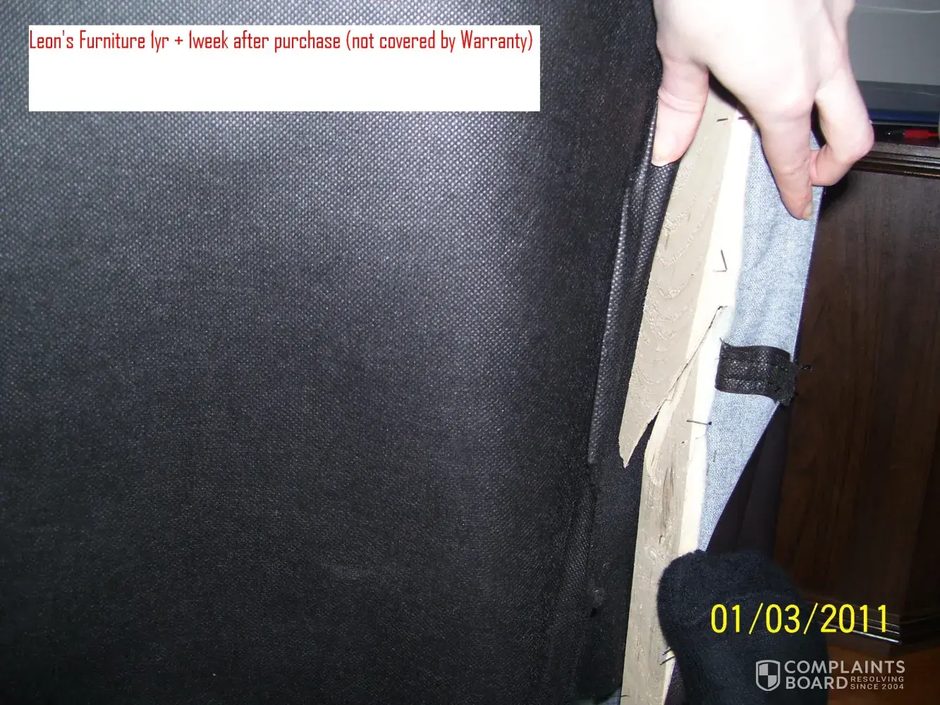 We went to leons to buy a tv and a fire place stand and a sofa . we got it all and 2 mouths later the sofa was craking it takes 6 mouths for the part to come in thay pic up the sofa and 5 day it was back there were cracks on the side thay put black marcker on it to try to hide it i was so p off if this is how thay fixs things i will be going in to complan but i no thay will say thay did not do it or thay will say it will take 6 more mouths to fix it