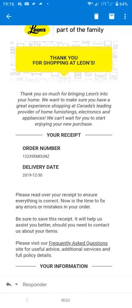 Leon's Furniture Order I have never received - order number 02020lgqrhw