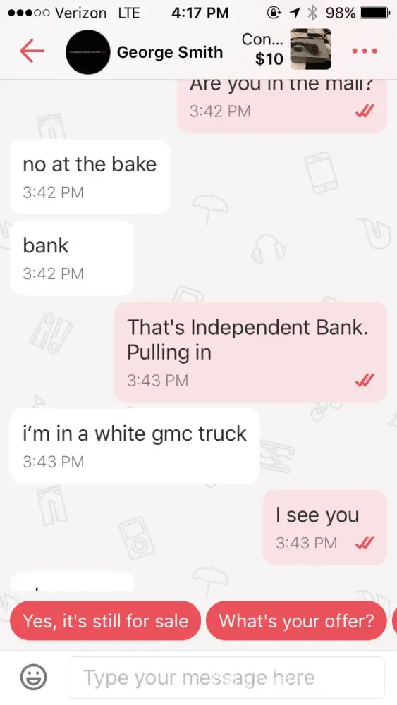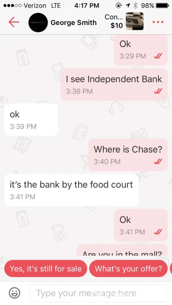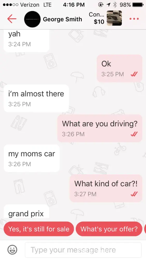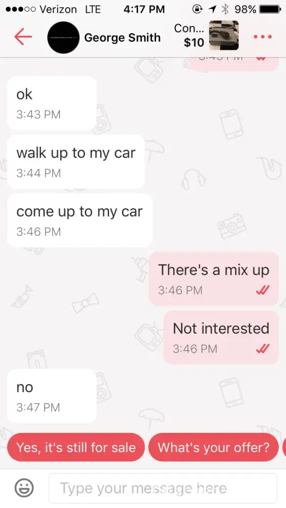 Spend several days planning out a time to meet with a guy to buy some shelves that I desperately need... Day of meet arrives and he was supposed to send me contact info and an address. Go into messages because my phone chimes to let me know he sent a message. The specific chat is not showing up. It was right in the notifications on my phone and everything, but I cannot under any circumstance get the chat to show up in Letgo. In a few hours, the guy will consider me a no-show and probably block me because Letgo has POS messaging. I've been using this app for several years now, but lately their messages are getting worse.