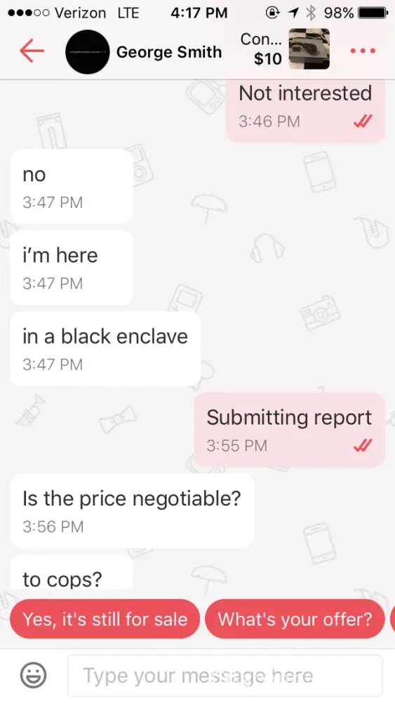 Weeks later I contact her on the Let Go app again. We agreed on the price again. I told her what caught my attention, was that she lived on the same side of the city as I do.She tried to give me an address on the north side. When I told her that that the address was too far, we Ageed 71st South shore., She never showed and blocked me.This person cursed me out on your app, Which was very unprofessional rude. To have someone like that on your app is a disgrace to the Letgo company.