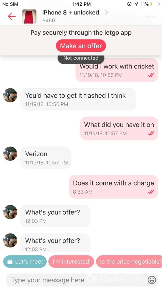 I had a lot of success with the letgo app till recently. I was contacted by Waylon freeman, and his buddy wanted to purchase most of my car audio, 3 amps, 2 sets of subwoofers, an X-Cap, and spare battery. and a box ful of other things needed for an install. his friend Named Geremy Courrier (I found out true identies with research of my own, Waylon has since changed name to "BOB"shortly after I was given $1000 in counterfit cash. these guys should be held accountable, as I feel my local authorities are not much help. I have reported the user (both names on being paid with counterfit cash. the items I sold were all in perfect working order and retail worth a lot more like $1800, I had collected over a period of several yrs.