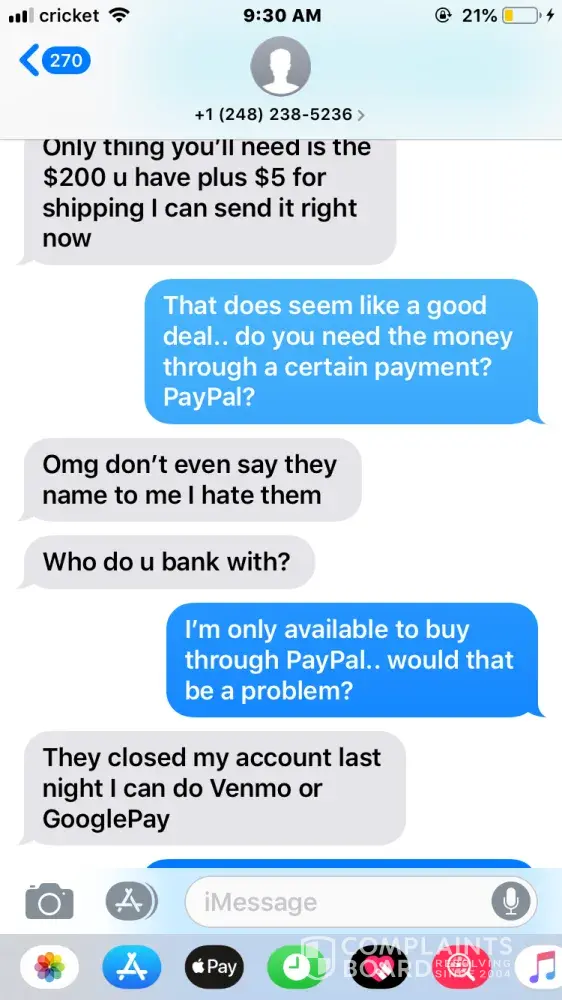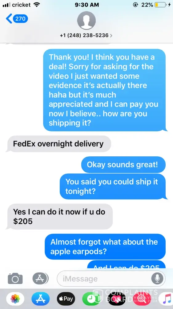 Hi my name is Arianá, in the night of November 21st, 2018 around 8:30 PM Western time, I Sent Ashley Parker money, unfortunately I was robbed. She informed me the product was $220 and after hours of conversating I made a purchase. Hours later she wrote me again demanding $75 more, I let her know I was unable to do so and she let me know I must. She replied I must send the $75 or have a good day. I do not appreciate this type of business. I would like my refund.