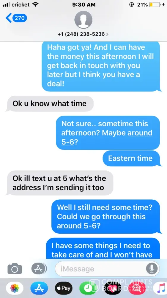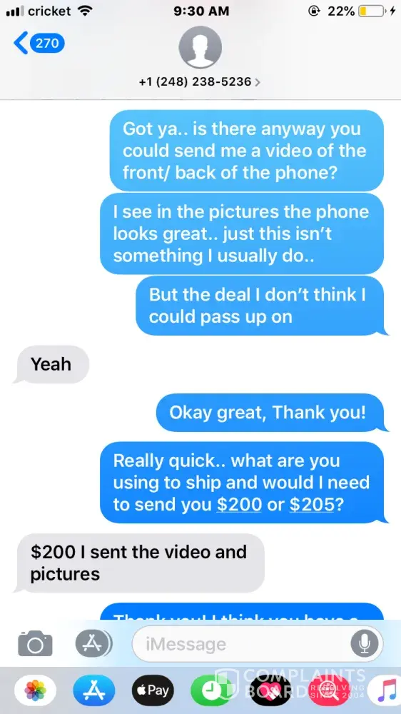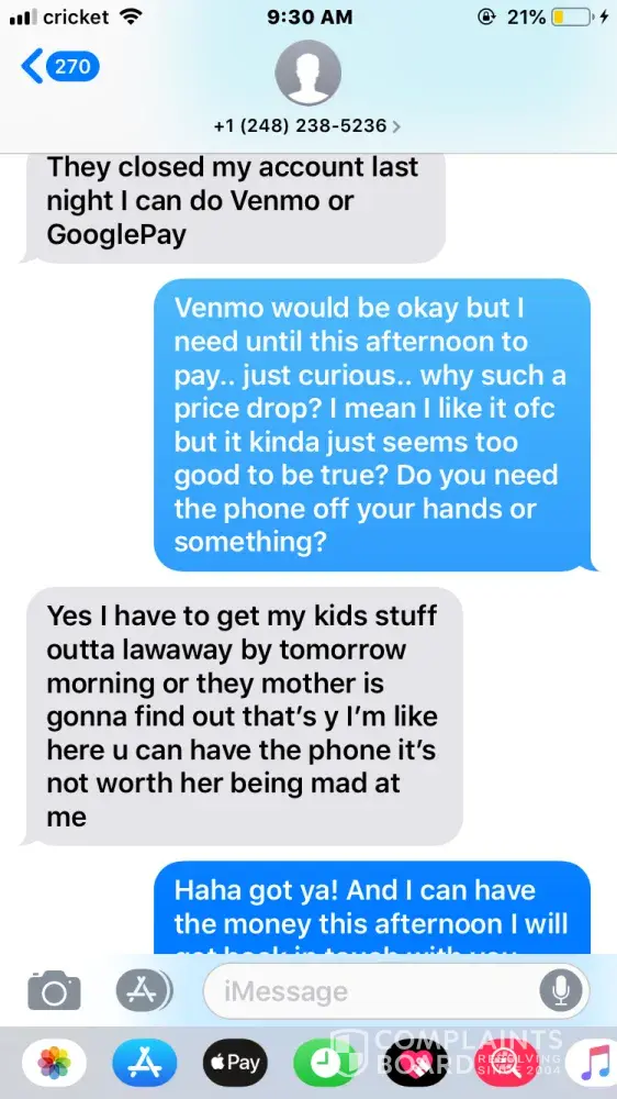 We chatted online and decided on $450.00. The phone was not charged at time of transaction and as soon as I realized his phone was not what he (Corey Davis ) promises to be, he stopped taking my phone calls/texts. The phone # he used to complete this transaction was [protected].