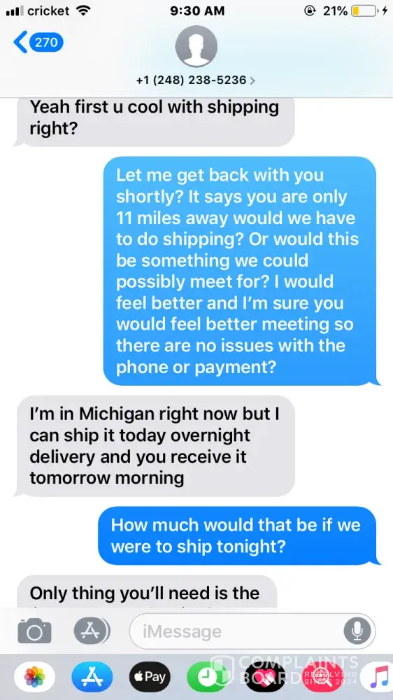 I made a report to y'all as well as to Dallas Police. I just need my money back and to return the piece of junk he sold as phone back to him. I don't want to report this site to others as terrible. I'm giving all a good chance to handle me well. I have been doing online, Craig and in-person transactions since late 90s, I've not felt this way before. Please can someone intervene. He refuses to answer my calls/texts. He would use your site again and again and leavin very unsatisfied customers/clients along his trail. HELP!