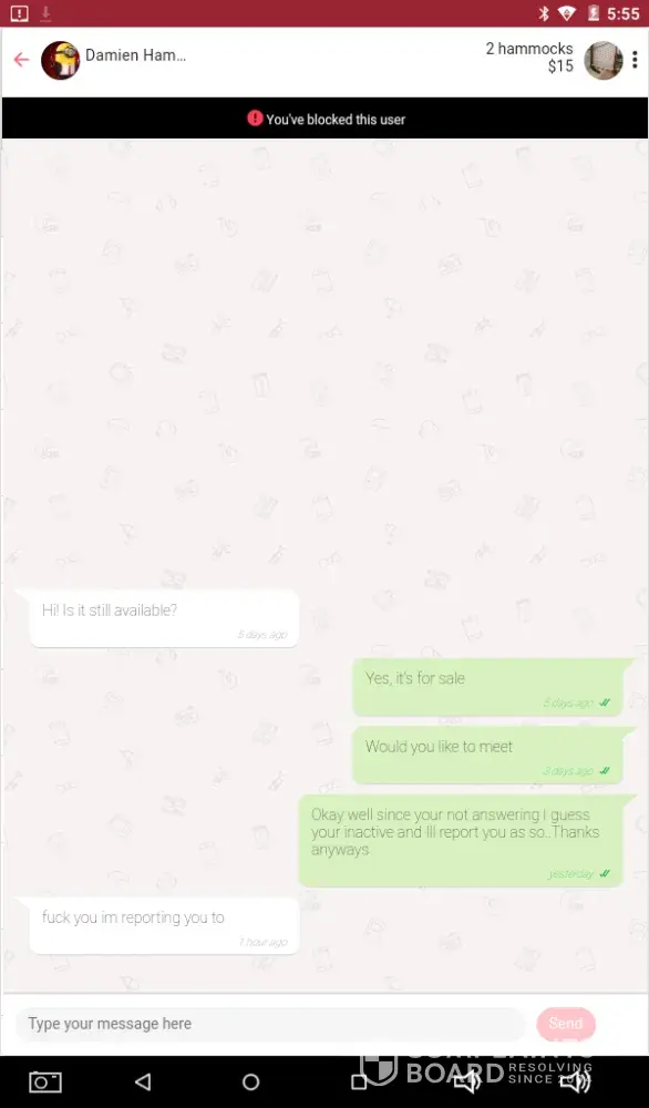 I don't appreciate him verbally abusing me. I didn't be rude to them so I don't like that I was told the comment said in the screenshot. I blocked the user but i hope that you can somehow warn others that he is not a nice person to deal with.