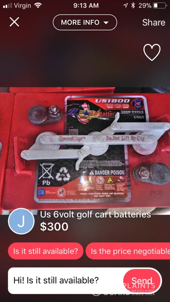 Joe Roberts of socastee SC is selling stolen golf cart batteries. He sold a set to me with all the labels removed and couldn't explain why. He offered a 30 day warranty in which he did not honor. Tried to return 2 of the batteries and he simply blocked me after numerous attempts of trying to contact him. I only want my $100 back and I'll be happy. Sellers like this bring down the letgo reputation. Been using letgo for a while now. This is my first issue.