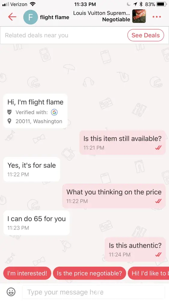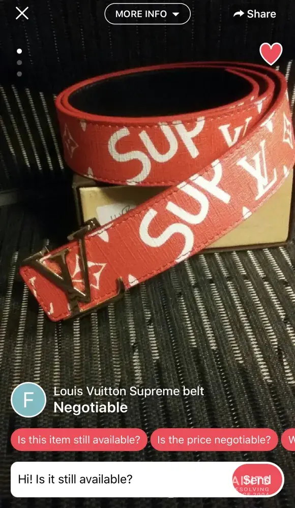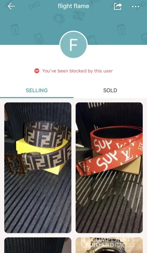 I contacted a seller called "flight flame" selling various high end brand belts such as Gucci, Louis Vuitton, Fendi, etc. I contacted this seller asking him if his "Louis Vuitton Supreme Belt" was still available. This is a $2, 000 belt and he had it up for negotiable. He offered $65 and when I asked if it was authentic, he blocked me. After immediately blocking me after asking authenticity is really sketchy. No one in their right mind would sell a $2k item for $65 unless it's fake
