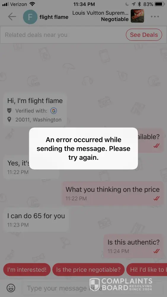 This is not the first time this has happened; this is my first time complaining because it is becoming ridiculous. Letgo should require verification before sending notifications & allowing the sale of items from that account.