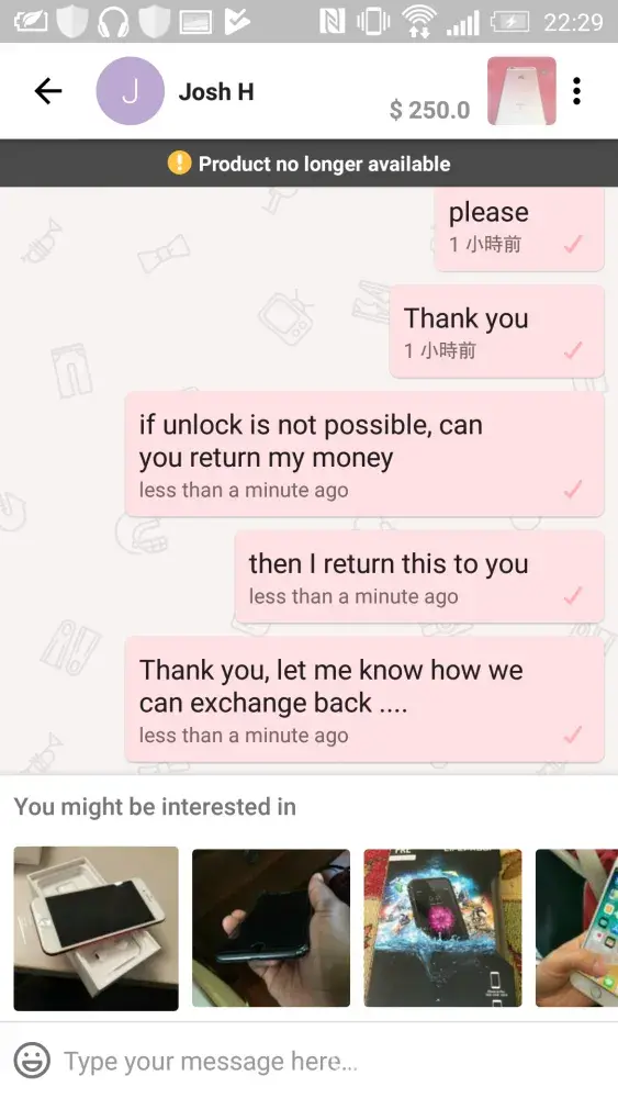 October 29, 2017.I brought an iPad mini from this guy name on let go Josh M )we meet in a local area he sold it to me for $80 dollars, I connect the iPad to the wifi to make sure everything works but after to connect to the wifi appears a message that iPad was lost and has an activation lock so I try to get in touch with him and this guy blocked me right away from let go now I can't to get back my money and also I report him from let go app,