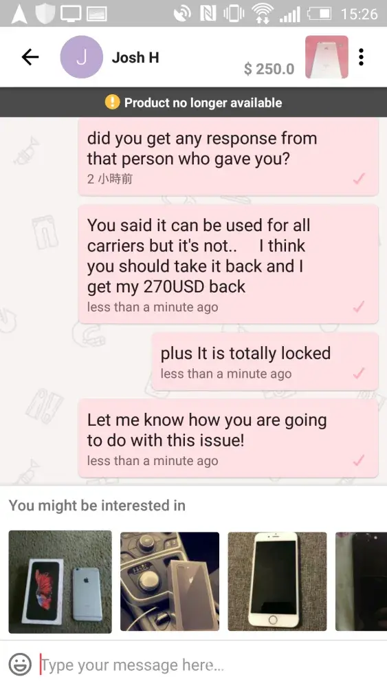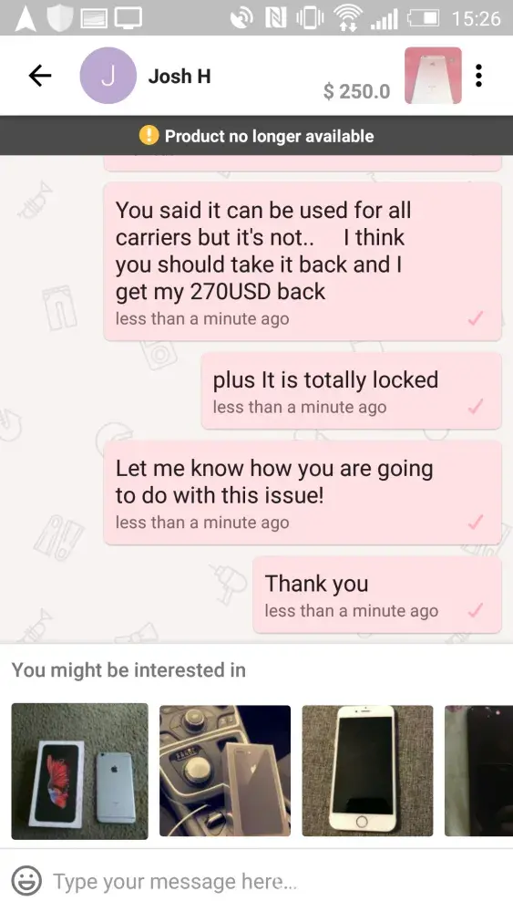 Case: Purchase (270 USD in cash) is a fraud and iphone 6s is locked.