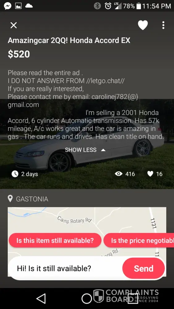 I am complaining about letgo constantly changing my listing to be inaccurate.