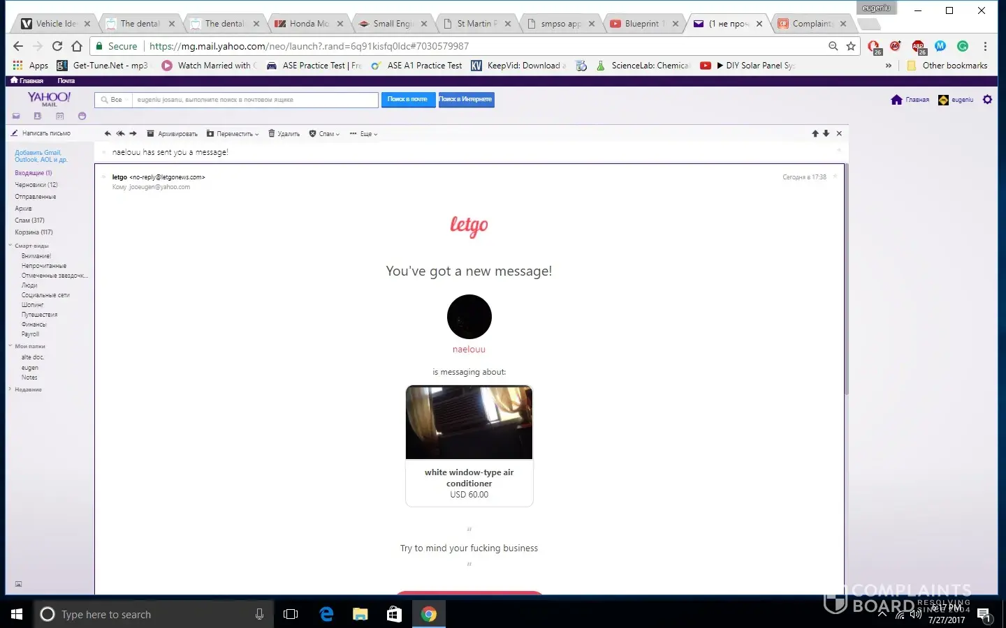 this is about a scam that allmost happened to me.I have 2 items on letgo that i am trying to sell and someone was asking me about one of the items he wanted me to send him pictures and he sent me a phone number to send them to so i did he asked about price so i sent him everything he wanted to know about and then he asked me if i do pay-pal or money gram and i told him cash only and then i didnt hear from him the rest of the day untill the next day he said how about a certified check so i said ok so that went on for about a day and then nothing and ten another day goes by and then he texts me the next day after that then he says he will send it priority mail so then i get it on monday 7-24-17 he then wanted me to deposite into my checking acc. so i had taken it to just any old bank to find out just if it was fake or not and they told me that it was indeed fake.you can call me at [protected] my name is curtis