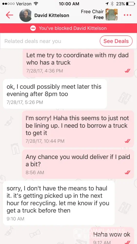 I received a bad review because the person I was buying from was difficult to work with. He also mislead in his review of me. After giving many excuses about why he couldn't meet up and several very last min, inconvenient time proposals during the work week, I offered to just pay him to deliver that way it could be on his own time. It was just an offer. I was always polite, even though he wasn't very friendly up until I found out he was about to recycle the item we'd agreed I was going to get. He said "you have one hr to pick up the item or I'm recycling it." Then when I was very upset, he back tracked and blamed his wife. I reviewed him according to how he behaved, but he said I was rude, wanted delivery (untrue), and that I was the one who couldn't make our meetups. I'm very upset that there isn't some better system in place than the honors system that holds a person to their agreement. Either way, I'd like his review of me to please be taken down. I'm happy to submit the conversation.