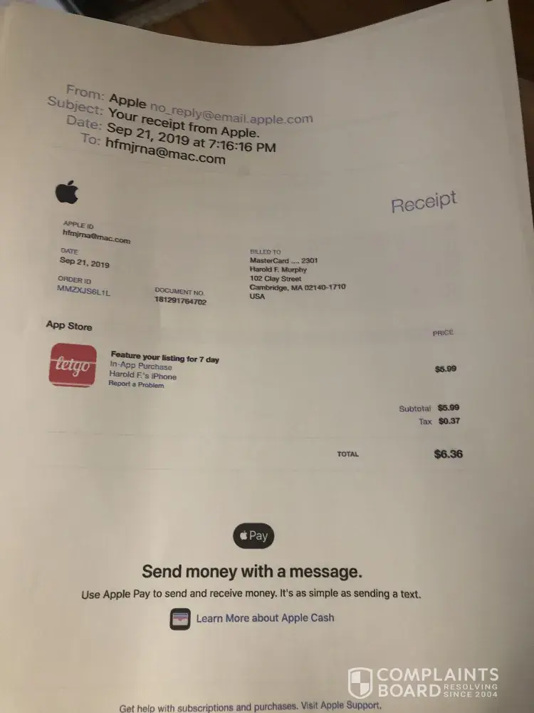 Letgo complaint
