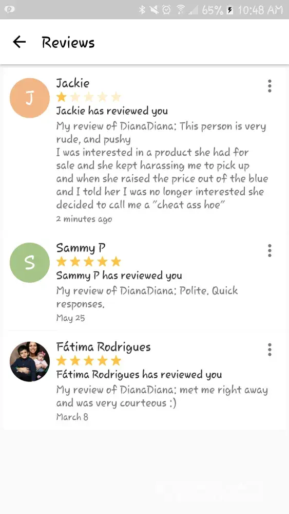 I would like LetGo team to please remove these two reviews... it's hurting my account...