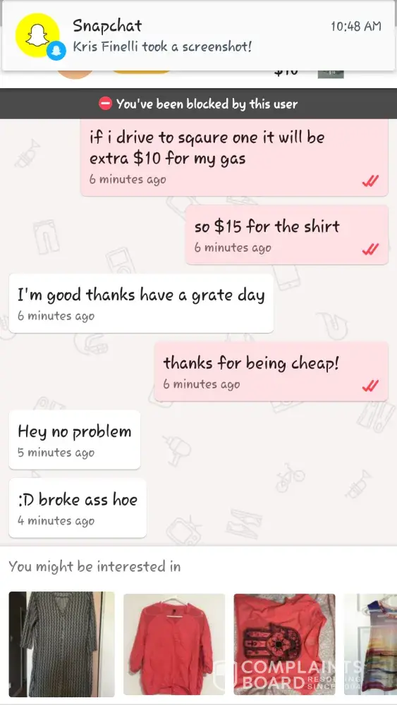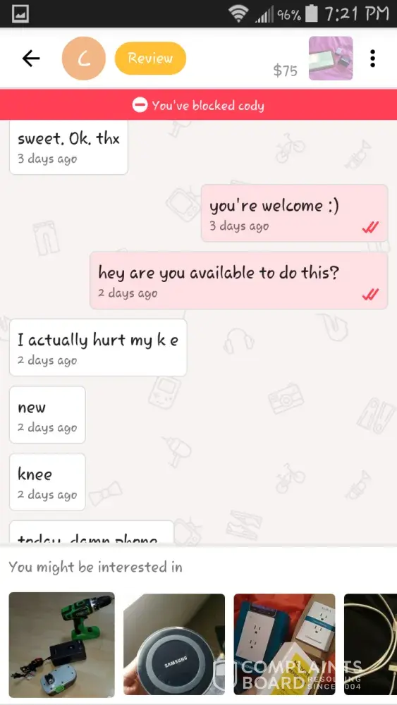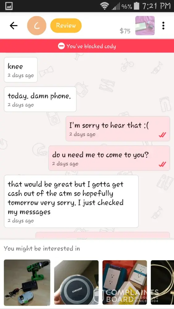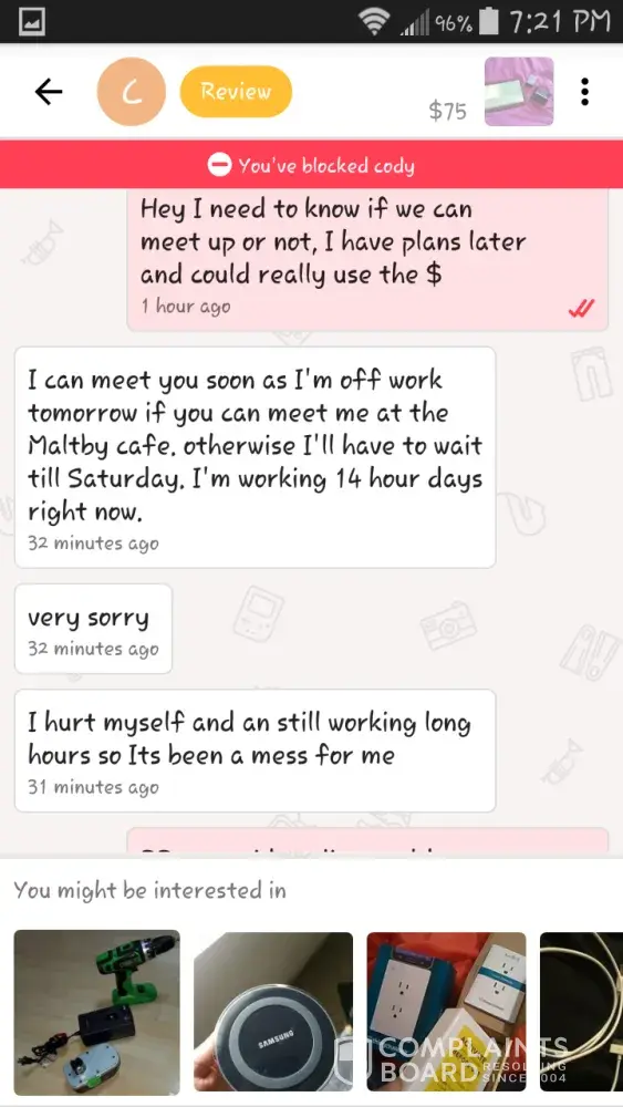 I am complaining because I purshased a iPhone 7 plus red from the user amber marie which was technically supposed to come today and I got scammed by her for $150. I either want my money back or the phone. I also don't understand why let go lets people like this on their app. I worked day and night for that money and the fact that I have to get scammed like that is very messed up. All I want is my mine back or I would appreciate the phone